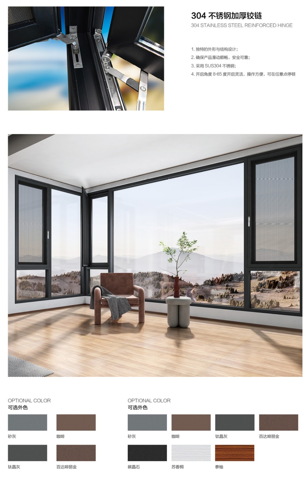 產品型號:110云攆雙內開被動式系統窗 窗紗一體系列