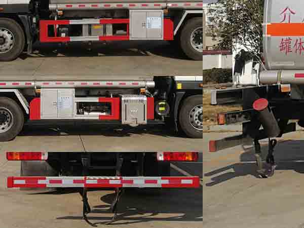 配置  1、該車適用于危險品運輸,運送危險貨物車輛類型為:FL型,類項號:3。運輸介質(zhì):汽油,密度:700千克/立方米。罐體有效容積21.4立方米,罐體外形尺寸(長×寬×高)(mm):7000×2350×1580。2、側(cè)、后防護材料均為Q235,螺栓連接;后防護截面尺寸(寬×高)(mm)60×120,下邊緣離地高500mm。3、EBS系統(tǒng)生產(chǎn)廠家及型號分別為:威伯科汽車**系統(tǒng)(**)有限公司(EBS3)。僅選用排氣管前置、限速裝置(限速79km/h)、前輪盤式制動及子午線輪胎的底盤;安裝帶有衛(wèi)星定位功能的行駛記錄儀;發(fā)動機型號及油耗值(L/100km)為:WP7.270E61/36.79,WP7.300E61/36.79。后軸采用空氣懸架。轉(zhuǎn)向輪安裝輪胎爆胎應(yīng)急防護裝置。