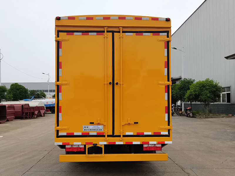 其它:該車主要專用裝置有遠程供排水泵,用于應急供排水搶險作業.車廂頂部封閉不可開啟.側防護由車身結構代替,后防護材料為Q235,焊接連接,截面尺寸(mm):140×80,下邊緣離地高度410mm.僅選用軸距3800mm.隨底盤選裝駕駛室.ABS型號/生產廠家:ABS/ASR-24V-4S/4M/襄陽東風隆誠機械有限責任公司.隨底盤選裝限速裝置,限速89km/h.