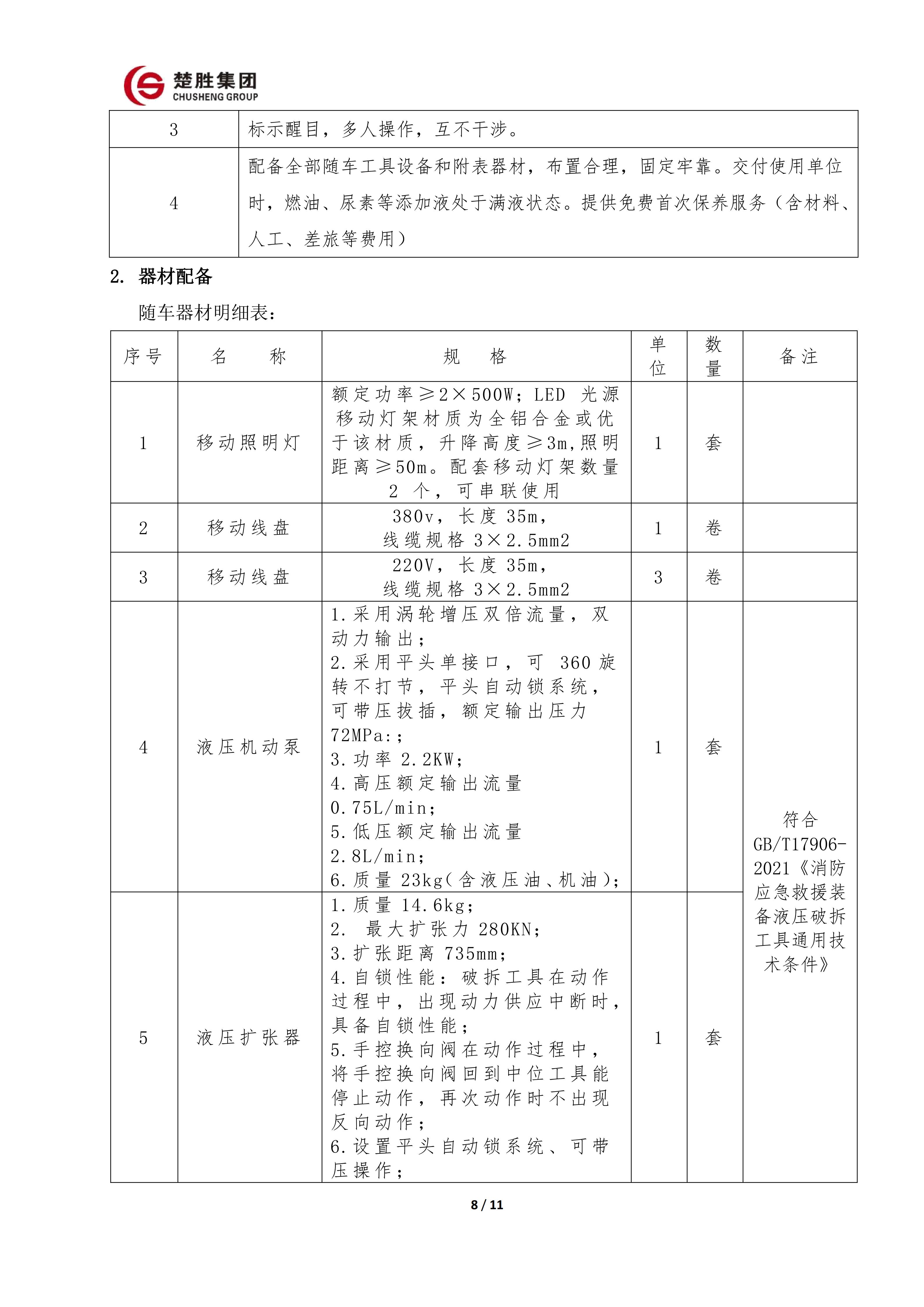 楚勝 CSC5140TXFJY90/S6型搶險救援消防車