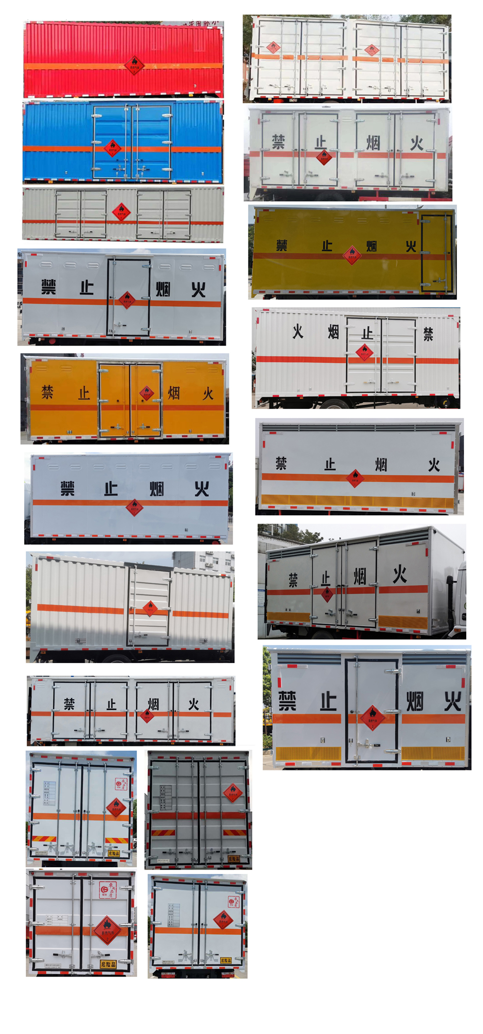| 配置 | 1、該車適用于運輸危險品。廂體頂部封閉,不可開啟。類項號:2.1,2.2。2、側,后防護材料均為Q235,連接方式:螺栓連接;后防護截面尺寸φ110mm,下邊緣離地高380mm。選裝后部無尾板,選裝無尾板時后防護材料為Q235,焊接連接,截面尺寸(mm)100×50,下邊緣離地高380mm。3、廂體側面選裝開門型式及位置,選裝不帶側開門,選裝瓦楞板結構;廂體側面板選裝開百葉窗。隨底盤選裝排半駕駛室;僅選用排氣管前置、限速裝置(限速80km/h)、前輪盤式制動及子午線輪胎的底盤;安裝帶有衛星定位功能的行駛記錄儀;ABS型號/生產廠家:ABS-E/威伯科汽車**系統(**)有限公司,CM4XL-4S/4M/廣州瑞立科密汽車電子股份有限公司。采用的發動機與油耗值(L/100Km)對應關系為: F3.8NSB6156/17.09,CY4SK261/18.07。液壓升降尾板收起狀態水平長度為300mm,尾板質量為450kg。該車型可選裝ETC車載裝置;轉向輪安裝爆胎應急防護裝置。 | ||