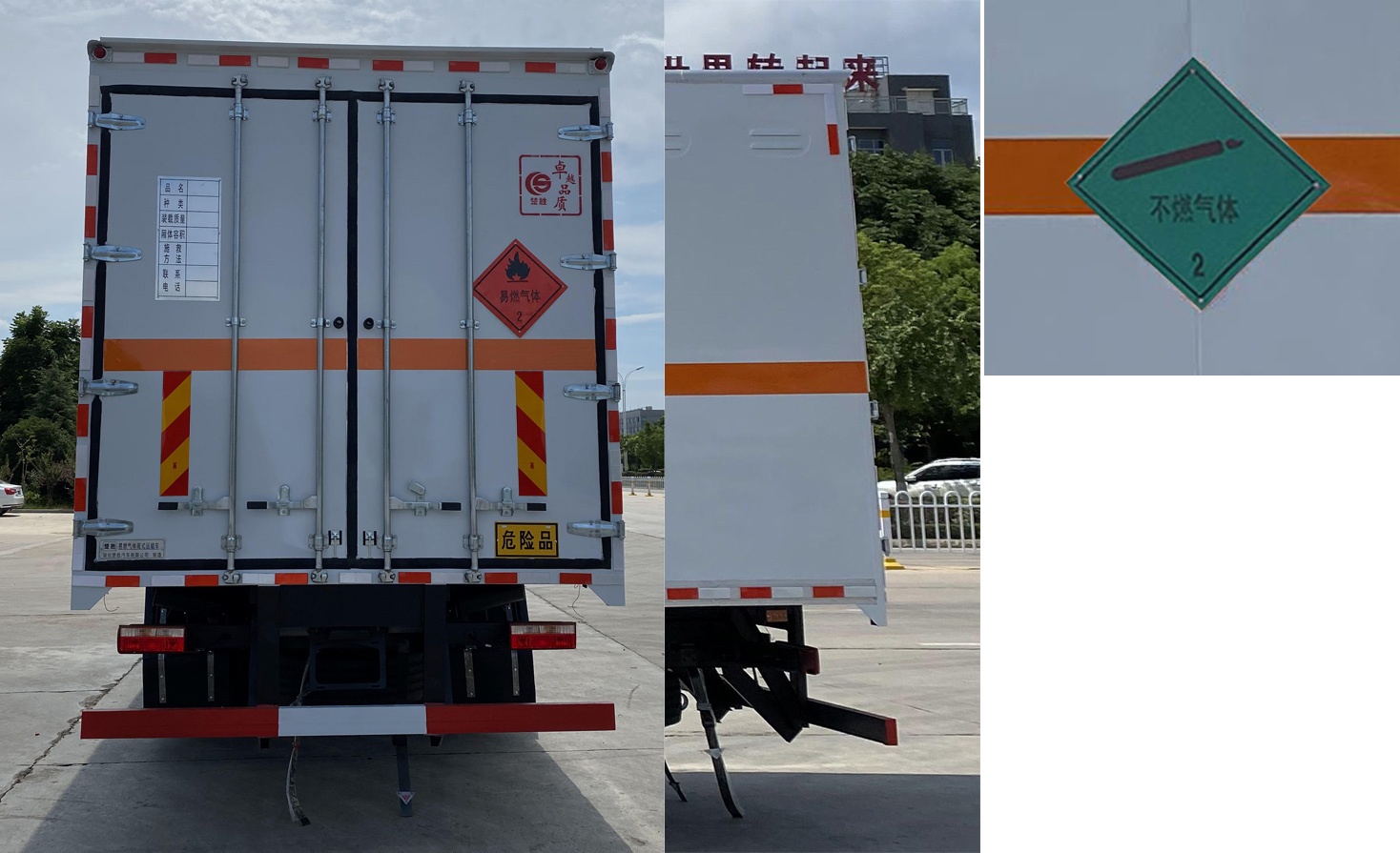 | 配置 | ABS型號:J ABS;ABS生產企業:焦作博瑞克**技術有限公司;安裝有限速裝置;限速裝置限速(km/h):80;安裝有具有衛星定位功能的行駛記錄儀;選裝描述:選裝后部無尾板,隨底盤選裝同系列的高頂駕駛室,選裝氣喇叭,遮陽罩,綠色濾光帶,踏步.該車型可選裝ETC車載裝置.運輸具有**包裝的不可燃氣體,安裝2.2類危險品標識.選裝側門型式及位置,選裝側門數量,選裝不開側門,廂體側面板選裝開百葉窗,選裝瓦楞板結構;發動機/油耗值(L/100km)對應關系為:B6.2NS6B230/26.7,D4.5NS6B220/26.6,YCS04200-68/26.4,CY4SK761/26.8;側后防護情況:側,后防護材料均為Q235,側防護螺栓連接;后防護焊接,截面尺寸120×120mm,下邊緣離地高480mm;尾板、上下坡道(或類似裝置)收起狀態的水平長度(mm):液壓升降尾板收起狀態水平長度為290mm,尾板質量為550kg;車廂頂部封閉且不可開啟;運輸**容器(瓶)包裝的貨物;FL型車輛;危險貨物類項號:2.1,2.2;其他說明:該車為危險貨物運輸車.僅選用排氣管前置,限速裝置,前輪盤式制動及子午線輪胎的底盤.后軸采用空氣懸架.轉向輪安裝輪胎爆胎應急防護裝置; | ||