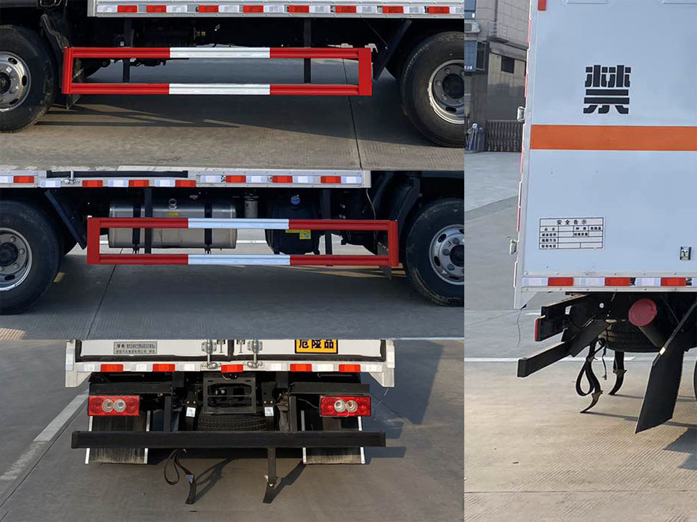 | 其它: | 1、該車適用于運輸危險品。廂體頂部封閉不可開啟。運輸具有獨立容器(瓶)包裝的物品,運送危險物品類項號:6.1,6.2。2、側,后防護材料均為Q235,螺栓連接;后防護截面尺寸100×50mm,下邊緣離地高410mm。廂體側面選裝開門型式及位置,選裝不帶側開門,選裝瓦楞板結構;選裝百葉窗。3、隨底盤選裝排半駕駛室。僅選用排氣管前置、限速裝置(限速80km/h)、前輪盤式制動及子午線輪胎的底盤;轉向輪裝備輪胎爆胎應急防護裝置。安裝帶衛星定位功能的行駛記錄儀。ABS系統型號:ABS-VI.E;生產企業:廣州瑞立科密汽車電子股份有限公司;ABS系統型號:ABS-E;生產企業:威伯科汽車控制系統(中國)有限公司;ABS系統型號:ABS8.8 ECU 24V,生產企業:東科克諾爾商用車制動系統(十堰)有限公司;發動機/油耗值(L/100km)對應關系為:CY4SK261/16.09,D30TCIF1/16.19,F2.8NS6B156/15.39,F3.8NS6B156/14.90。可選裝ETC車載裝置。 | ||