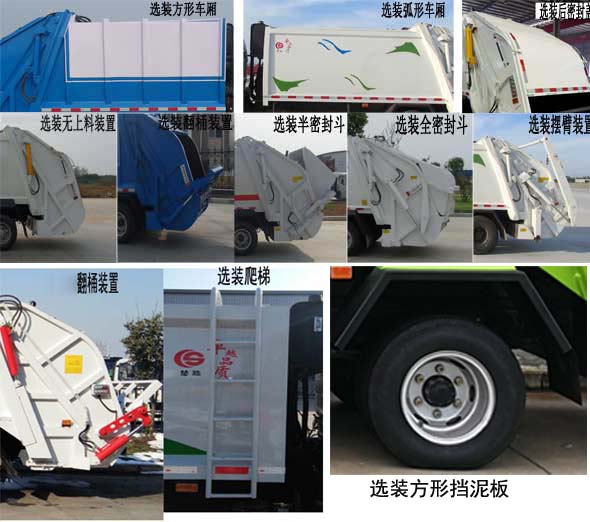 配置  1、該車主要用于垃圾收集和清運,主要專用裝置為廂體和壓縮系統(tǒng)。該車可選裝方形或弧形車廂;選裝后密封蓋裝置;選裝工作裝置時外形尺寸長/后伸(mm)對應(yīng)關(guān)系:①無上料裝置6500/0,②擺臂裝置6660/160,③全密封斗裝置6700/200,④半密封斗裝置、翻桶裝置6900/400。選裝方形擋泥板。2、側(cè)防護采用Q235,螺栓連接。后防護由專用裝置替代,離地高500mm。3、ABS生產(chǎn)廠家:浙江萬安科技股份有限公司/VIE ABS-II。發(fā)動機/油耗值(L/100km)對應(yīng)關(guān)系為:WP2.3NQ130E61/15.32,H20-120E60/12.72。該車型可選裝ETC車載裝置.