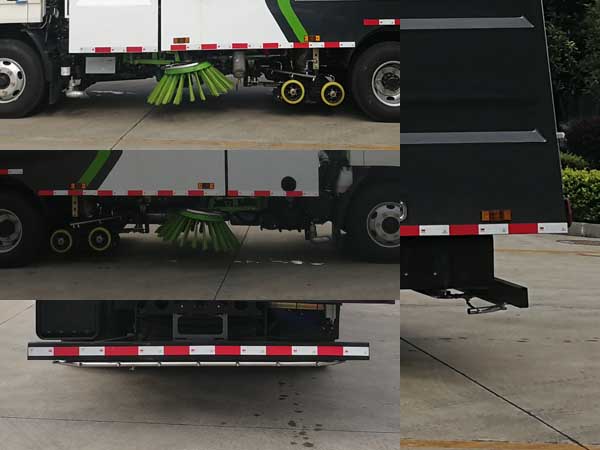 配置  ABS型號:VIE ABS-II;ABS生產企業:浙江萬安科技股份有限公司;選裝描述:隨底盤選裝前照燈.選裝新前臉.前霧燈可選擇取消;側后防護情況:側防護由專用裝置替代,后防護材料為Q235,螺栓連接,截面尺寸:100×50mm,下邊緣離地高:400mm;專用功能及裝置:該車主要用于道路清掃,主要專用裝置為箱體,清掃總成;