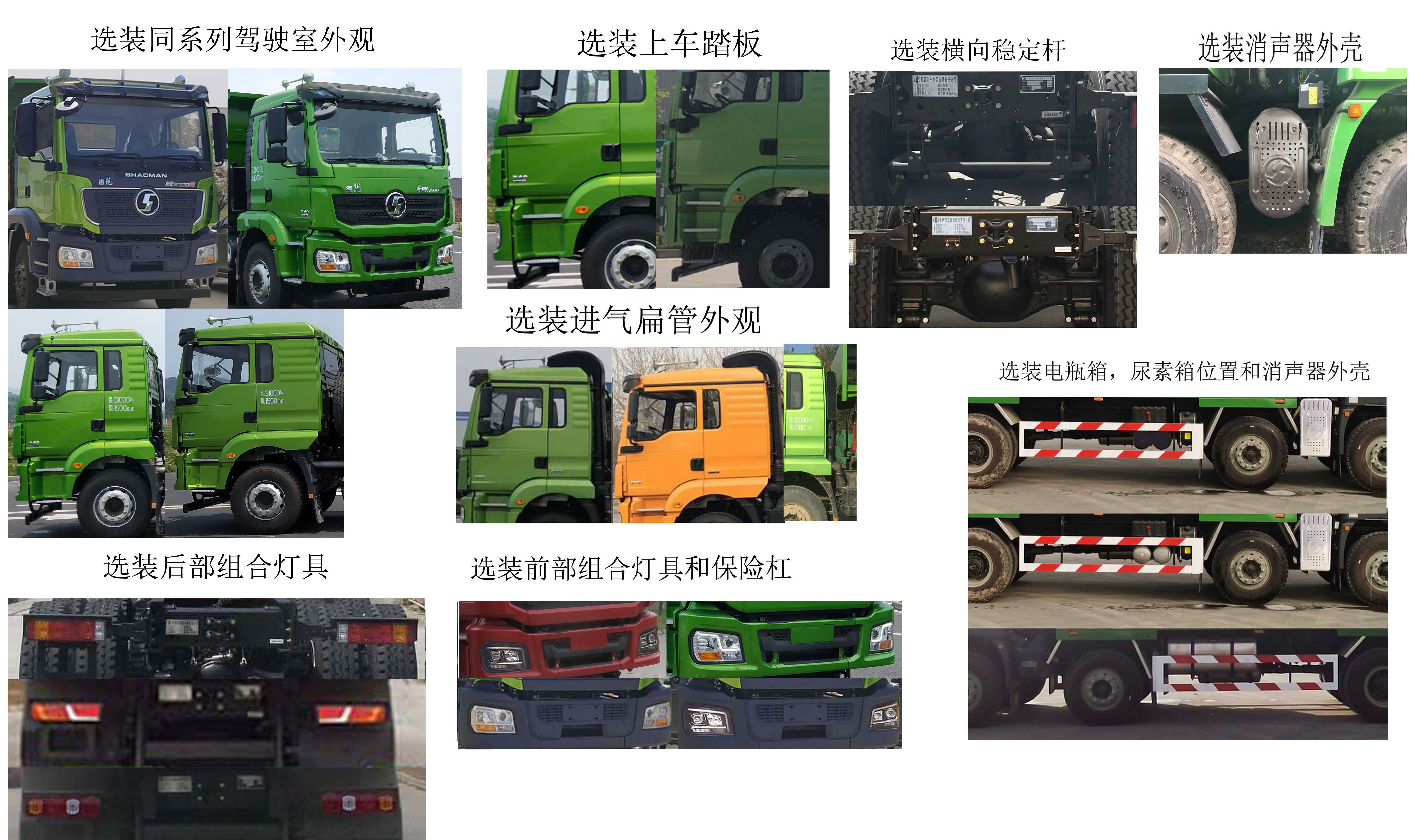 | 配置 | 1.在軸距為1800+4175+1400,1950+4025+1400底盤上改裝;2.隨底盤選裝同系列駕駛室,進氣扁管,前后組合燈具,電瓶箱位置,尿素箱位置,消聲器外殼,保險杠,上車踏板和橫向穩定桿.3,該車自卸方向為后翻.4,選裝貨箱欄板外觀,環保折疊篷布.環保蓋.5.側后防護所用材料:Q235;連接方式:螺栓連接;后防護斷面寬度(mm):50×120;后防護離地高度(mm):440.4,安裝帶衛星定位功能的行駛記錄儀.6,ABS系統生產廠家及型號分別為:西安正昌電子股份有限公司(型號:ZQFB-V).7,WP10H350E62,WP10H375E62,WP9H336E62,WP9H350E62,WP10H400E62發動機油耗申報值均為40.5L/100km.8,整車長度/后懸/貨箱長度對應關系為(mm):10700/1800/7600,10900/2000/7800. | ||