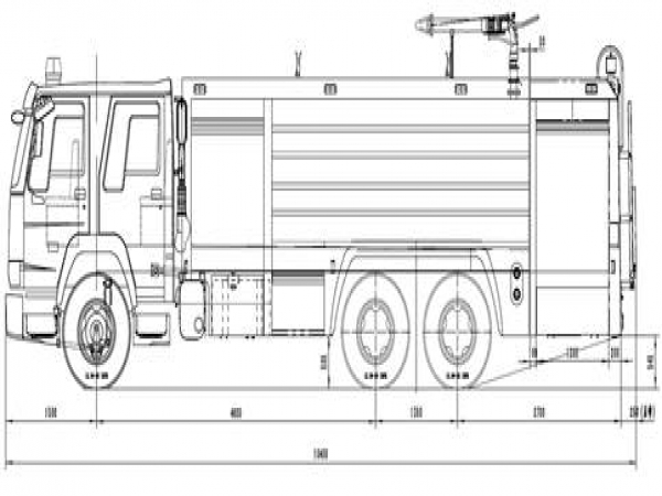 17噸水罐消防車采用中國重汽集團濟南卡車股份有限公司ZZ5357TXFV464MF5型二類汽車底盤,原裝雙排駕駛室,乘員2+4人,該車駕乘舒適輕便。上裝采用外露式水罐,整車載液量為水17000kg。器材箱采用高質量鋁合金卷簾門。底盤取力,發動機型號為MC11.44-60,最大功率327kW,通過萬向聯軸器驅動安裝在汽車尾部泵房里的CB10/100型低壓消防泵,可在1.0MPa下穩定輸出100L/s的流量;車頂安裝成都威斯特消防器材有限責任公司生產的PS8/80W型消防炮,流量80L/s,對應壓力0.8MPa,最大承壓1.3MPa,射程85m,可360°旋轉。同時該車具有比功率大、綜合性能強、操控集中簡便等特點。